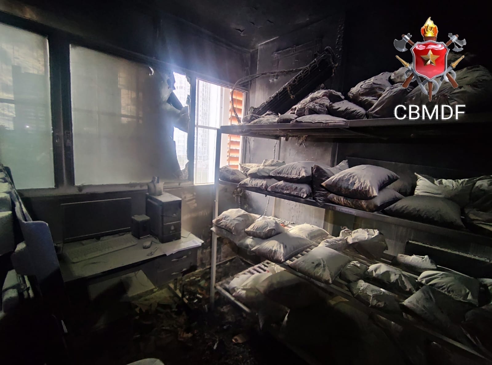 Foto: CBMDFNa tarde deste domingo (23), o Corpo de Bombeiros Militar do Distrito Federal (CBMDF) atendeu uma ocorrência de incêndio em uma sala no 4º andar do Conjunto Nacional, que era usada como depósito de uma loja de produtos alimentícios.