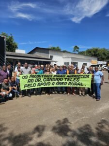 Uma imagem registrada durante o evento acabou simbolizando o clima da cerimônia: uma faixa de apoio ao Dr. Cândido Teles cercada por dezenas de apoiadores ao fundo. A cena refletiu a mobilização de lideranças comunitárias e produtores rurais que reconhecem o trabalho realizado pelo presidente da empresa pública de terras rurais do DF, especialmente nas pautas ligadas à regularização fundiária.